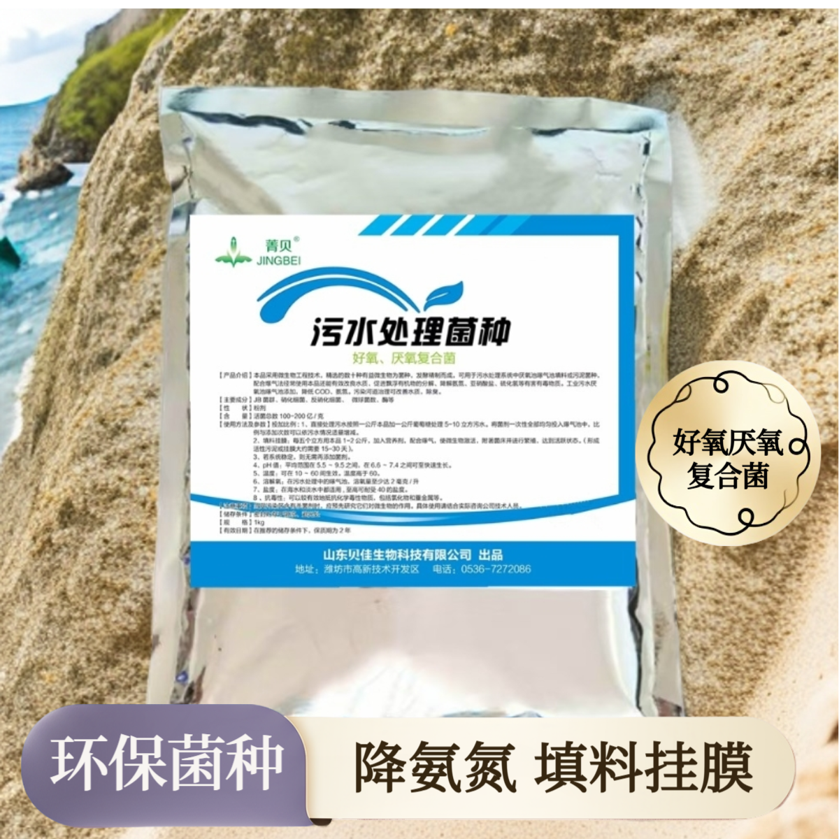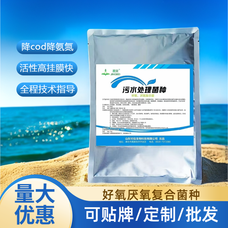 【成 分】JB菌群、硝化细菌、反硝化细菌、微球菌数、酶等【性 状】粉末【适用范围】适用于厌氧池、好氧池填料挂膜(免费提供技术指导),市政生活污水、磷化工废水、养殖废水、造纸废水、垃圾渗滤液、景观湖及河道的治理。使用方法方法一:直接使用:每立方1公斤直接均匀倒入。方法二:1、菌种激活(一公斤菌粉+一公斤红糖+